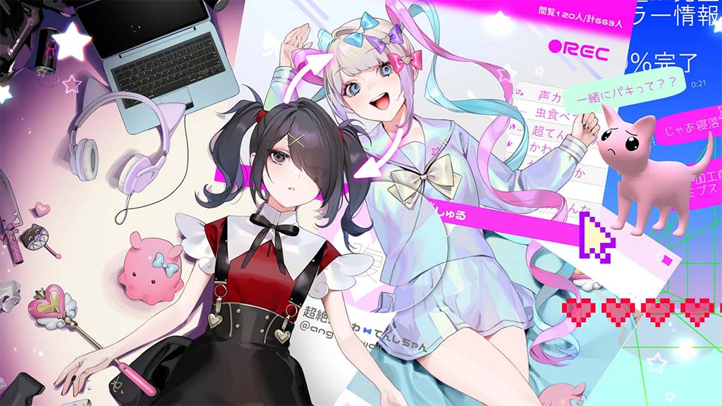 地雷系少女糖糖經過化妝後成爲「超絕可愛天使醬」超天醬開始了她的直播生涯。