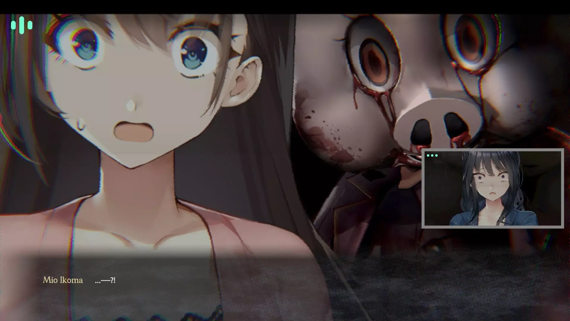 但通話那頭,白石梓已經因爲恐懼而歇斯底裏。而美櫻的屏幕影像之中,卻有一個豬頭人偶站在她背後,舉著柴刀用力劈下….